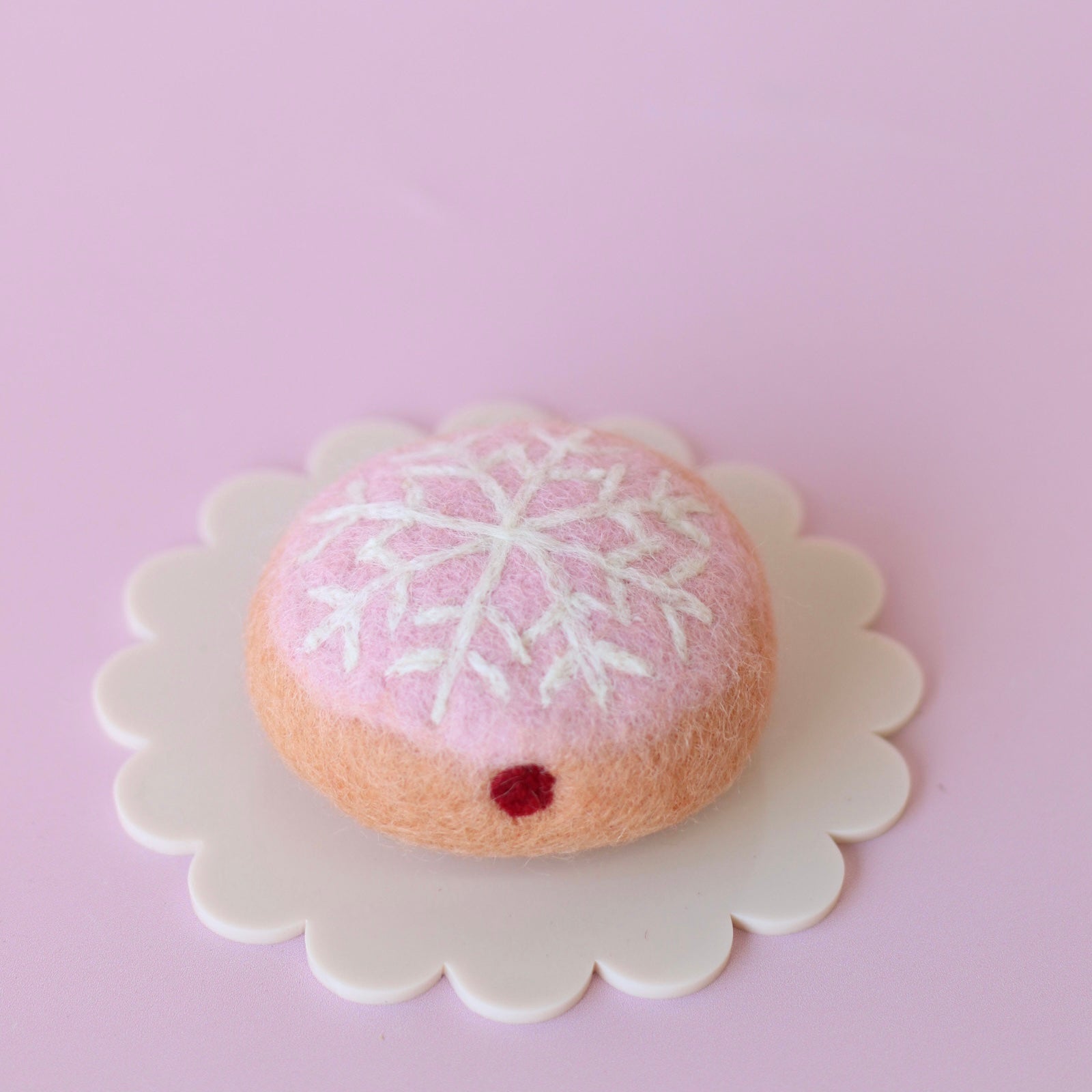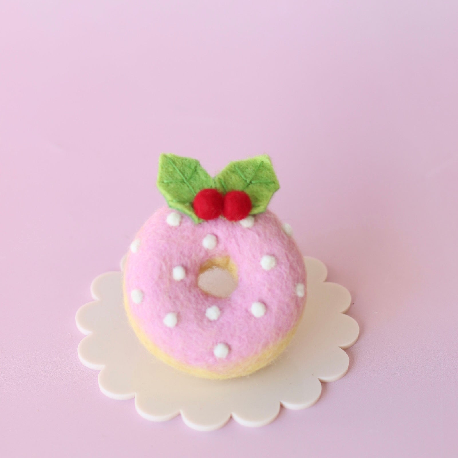 Indulge in the enchanting world of needle-felted artistry with our delightful festive felt donuts. Meticulously crafted by our talented artisans using pure wool, these whimsical treats are the perfect addition to your holiday season. Whether you're seeking the ultimate stocking filler, a captivating prop for a Christmas cafe, a fun and cute place setting gift or those memorable Christmas photos, our felt donuts are sure to bring joy and charm to any setting. Get ready to savor the magic of the season with these sweet creations!