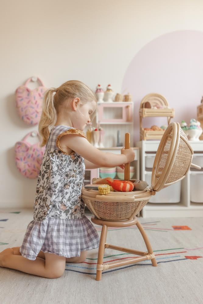 Rattan kids BBQ + tongs + hot coals + (Australia only)