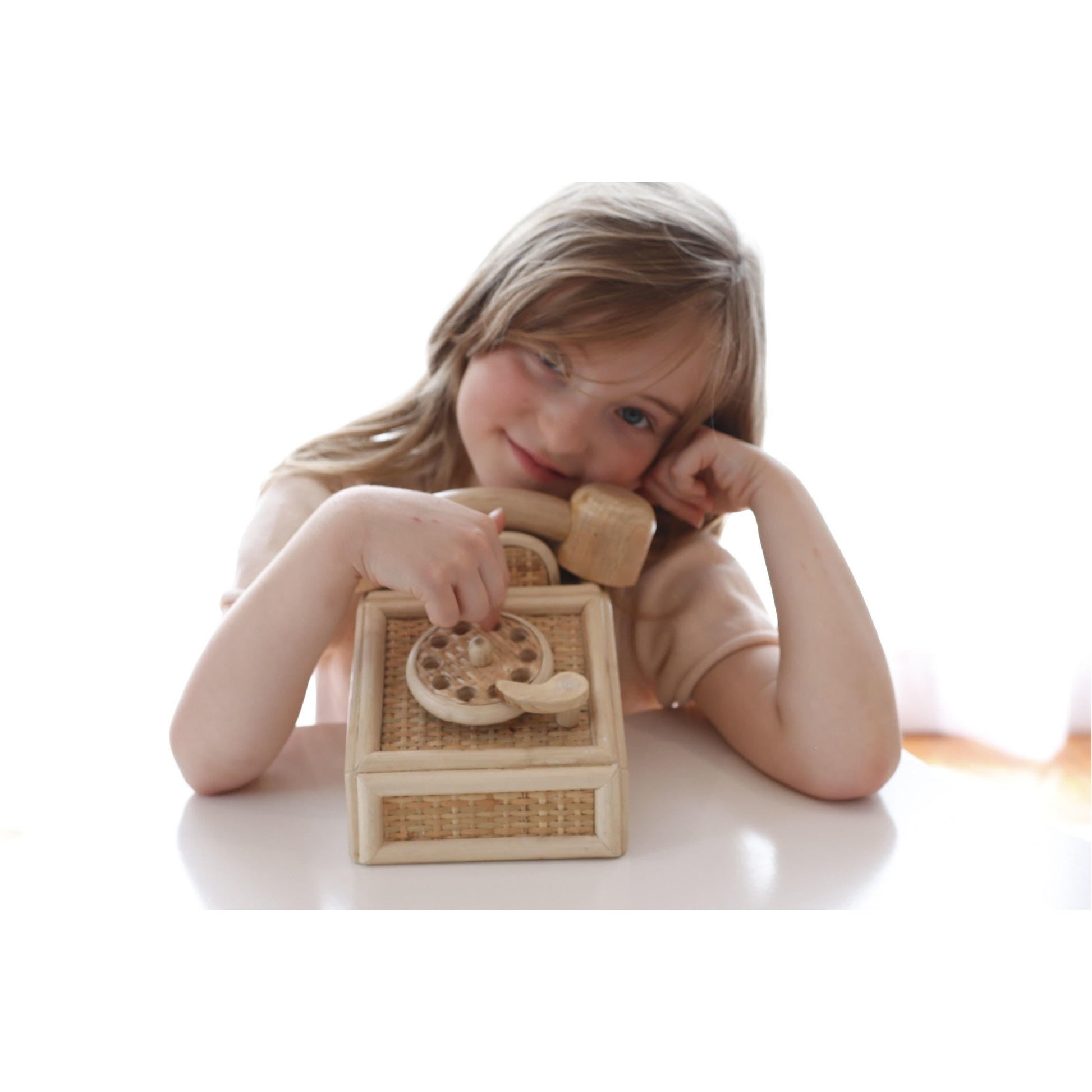 Add some vintage charm to your child's toy collection with our rattan telephone. Order now and watch your little ones' imaginations soar!