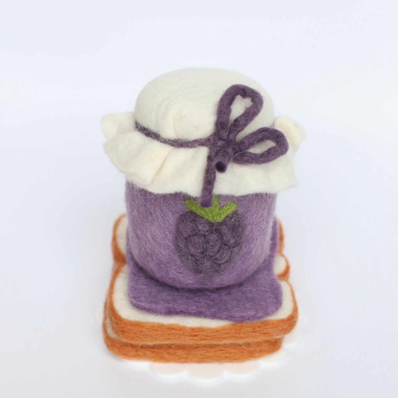 Enhance those imaginative breakfasts with our “Spread a little love!🫐🥖 5-piece felt blackberry jam & toast set! It’s oh-so-sweet jammy slices are removable for endless pretend breakfasts, and a fixed-lid pot for extra charm. Handmade for tiny hands & big imaginations! 💕”
