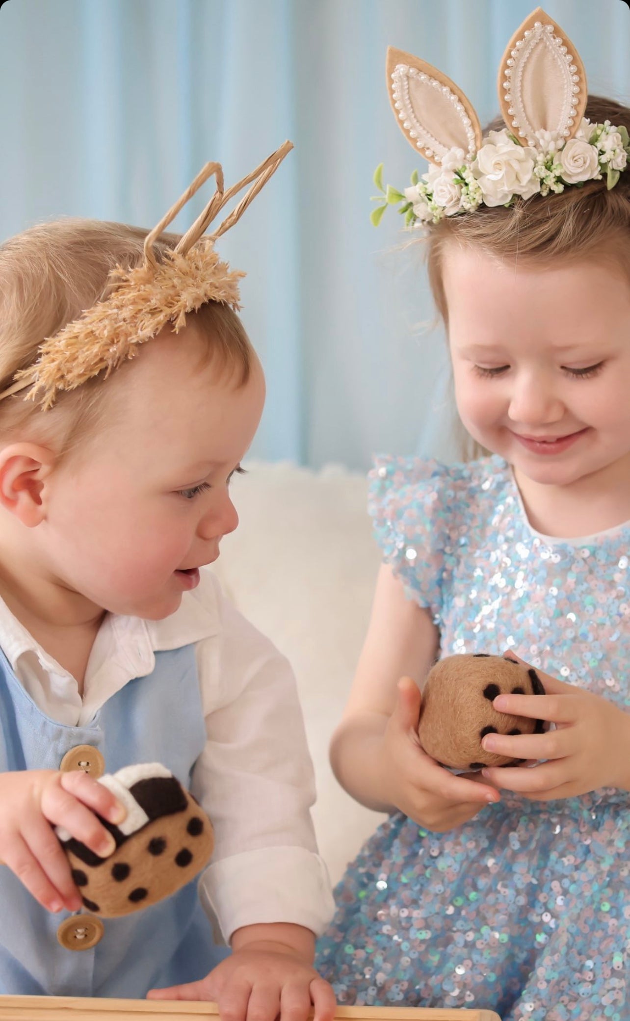 Our hot cross buns have been created by us at Juni Moon and are lovingly hand crafted from 100% wool, dyed with non-toxic dyes safe for your little ones.