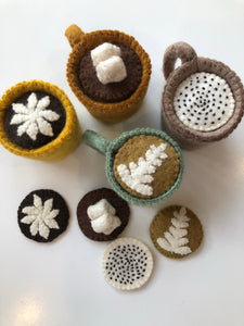 Each mug comes with a drink "pod" that forms the bulk of the drink. The kids can then choose from 4 different 'drinks' : Hot chocolate with marshmallows, Latte and Flat White with Coffee Art and a BabyCino.