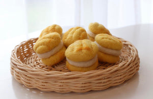 Our shortbread cookies have been created in house by us at Juni Moon and are lovingly hand crafted from 100% wool, dyed with non-toxic dyes safe for your little ones.